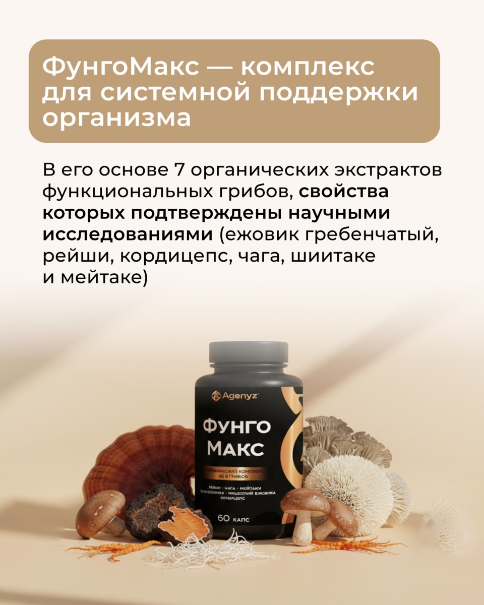 ФунгоМакс — это современный комплекс, созданный на основе 7 экстрактов из 6 видов функциональных грибов. Его эффективность подтверждена не только многовековой историей применения, но и реальными клиническими исследованиями.